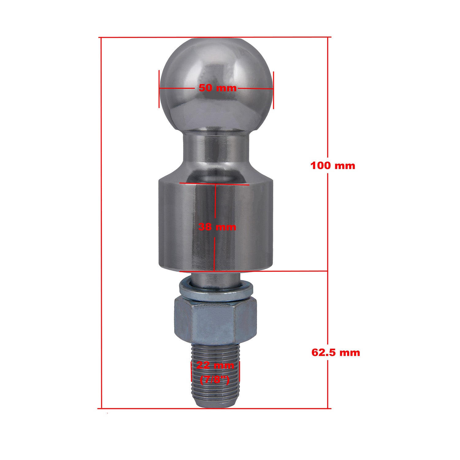 Product Name: 1.5" Inch High Rise Tow Ball 50mm 2000KG Trailer Towbar Tow ball length: 162.5mm Ball...