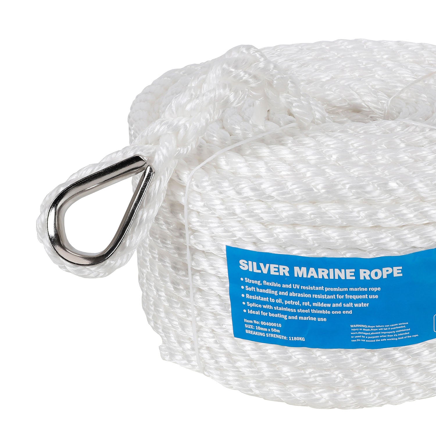 10mm x 50M Anchor Marine Rope Boat Mooring Line Stainless Steel Thimble