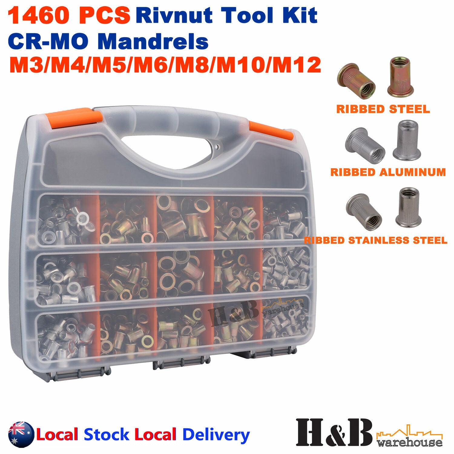 1460 Pc Rivnut Rivet Nut Riveter Nutsert Gun Tool Kit