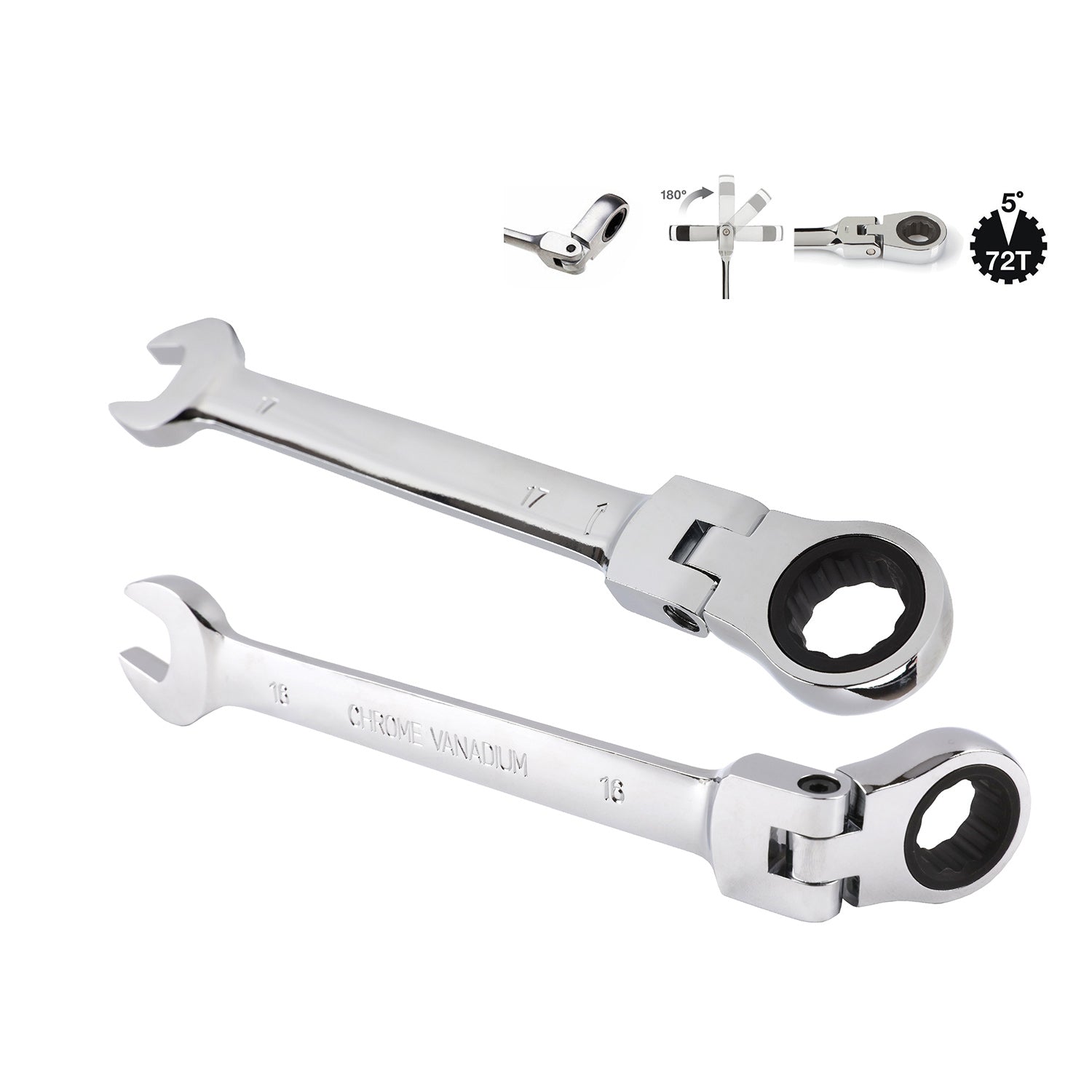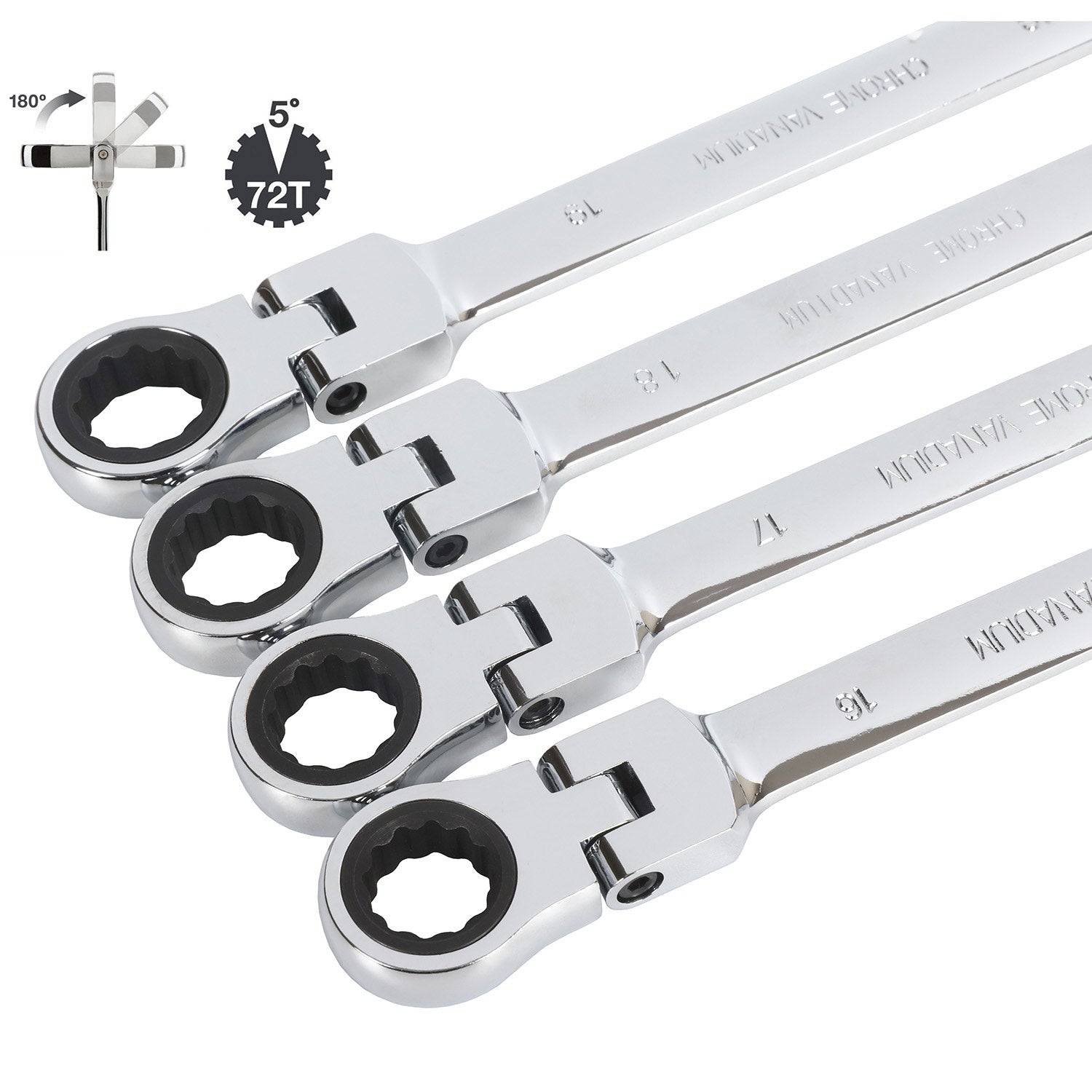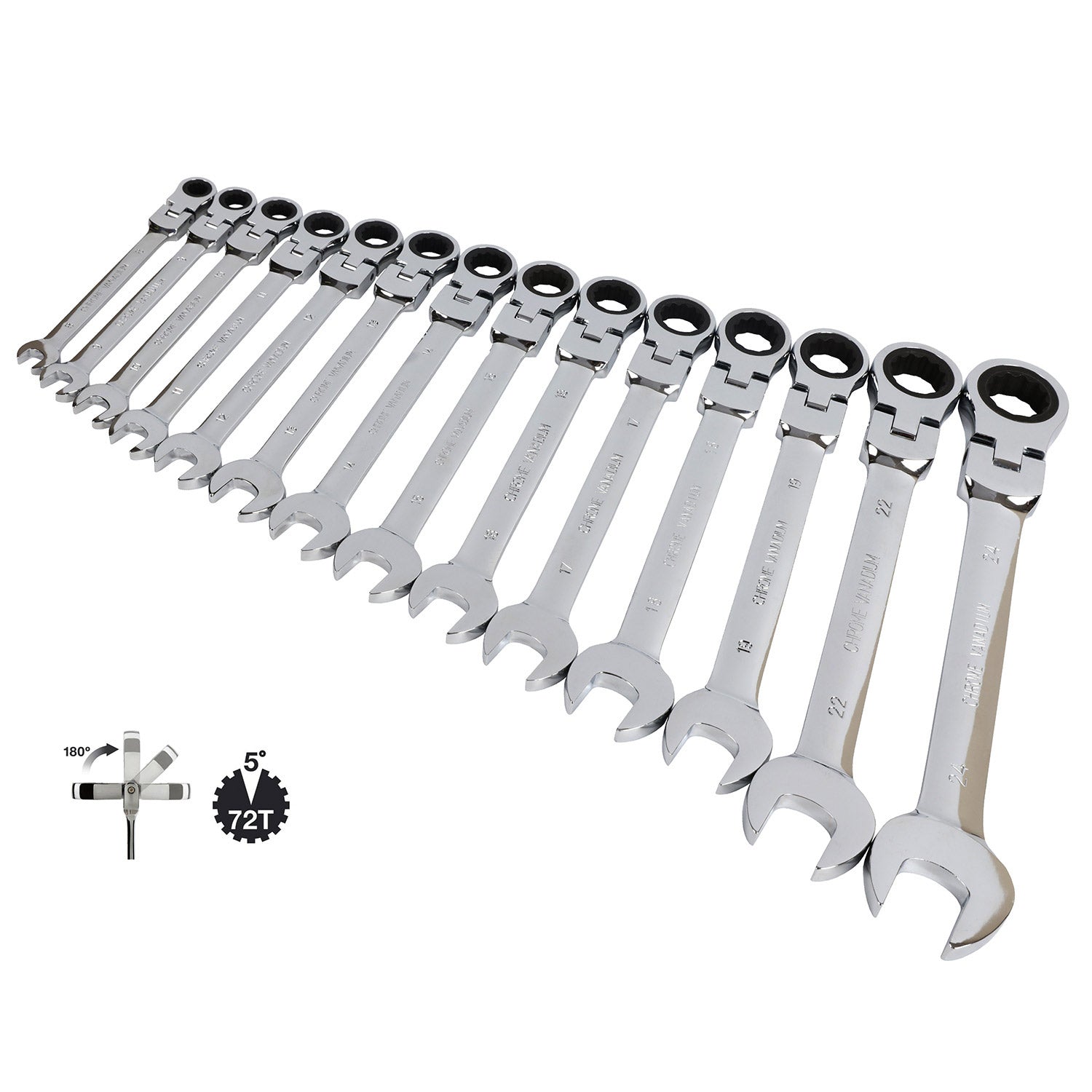 15 Pcs Trade Grade Ratchet Flex Head Gear Spanner Set CR-V Metric 6-22mm