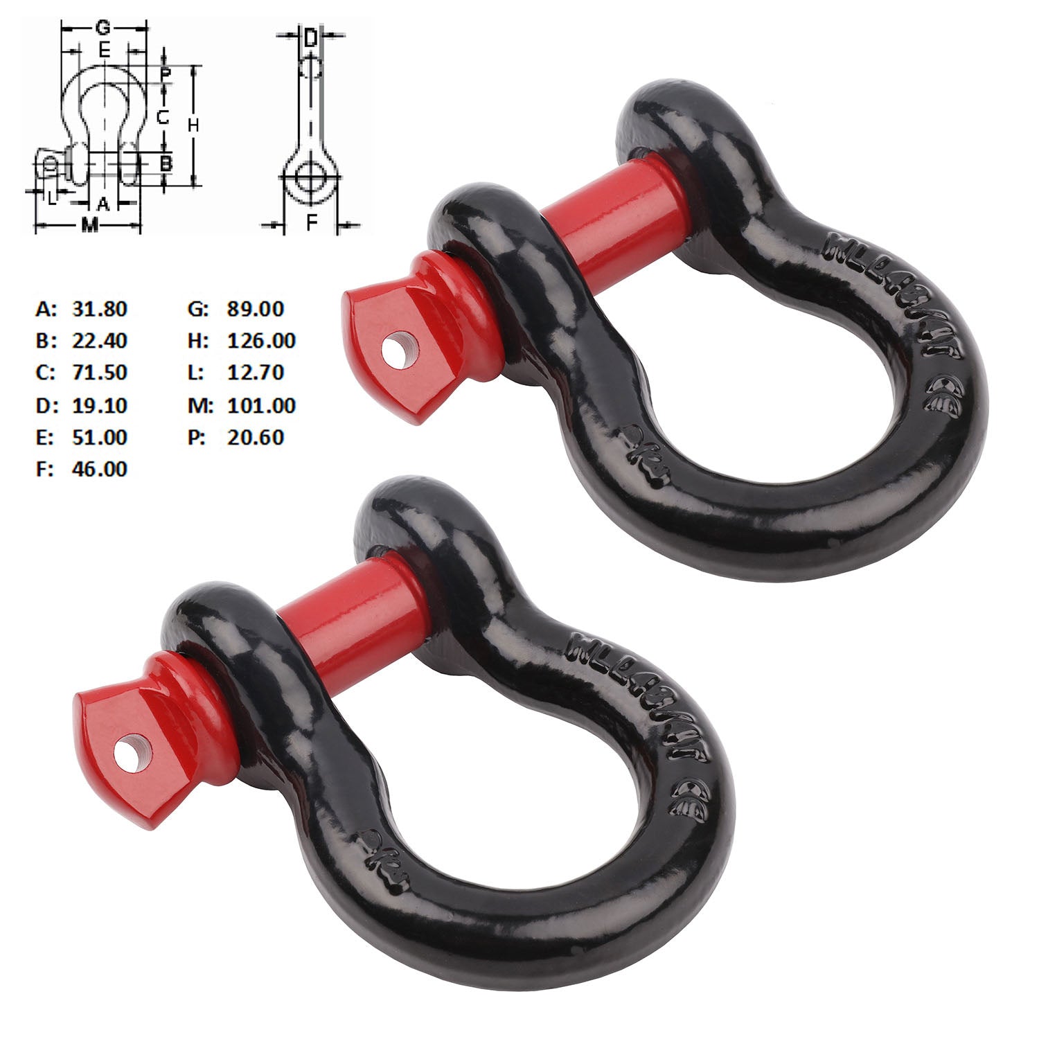 2 x Bow Shackles WLL 4.75 T Rated 19mm 4WD Recovery Tow Car Trailer Red