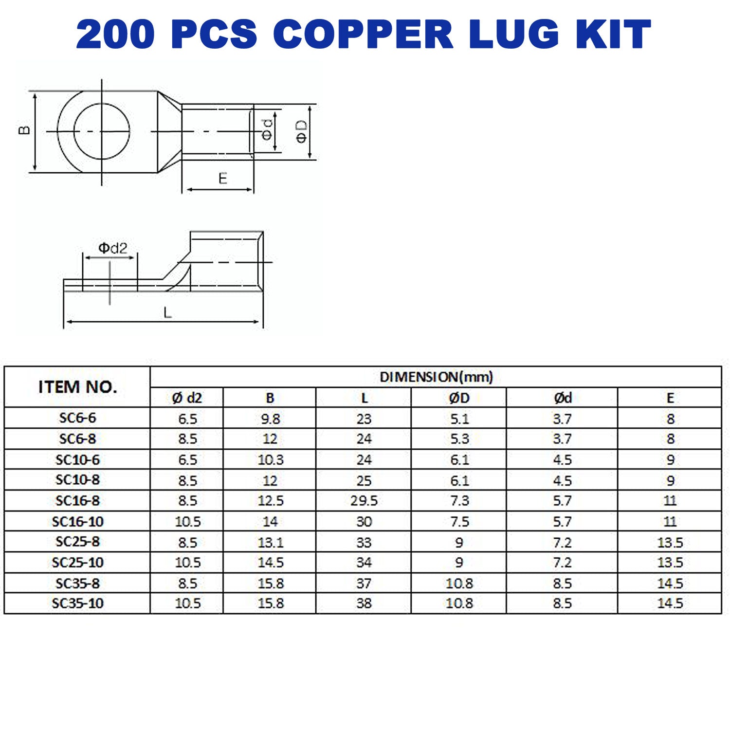 Product Name: 200 PCs Copper Lug Kit Stock Number: T0683 99.9% pure copper with electro-plated tin provide...