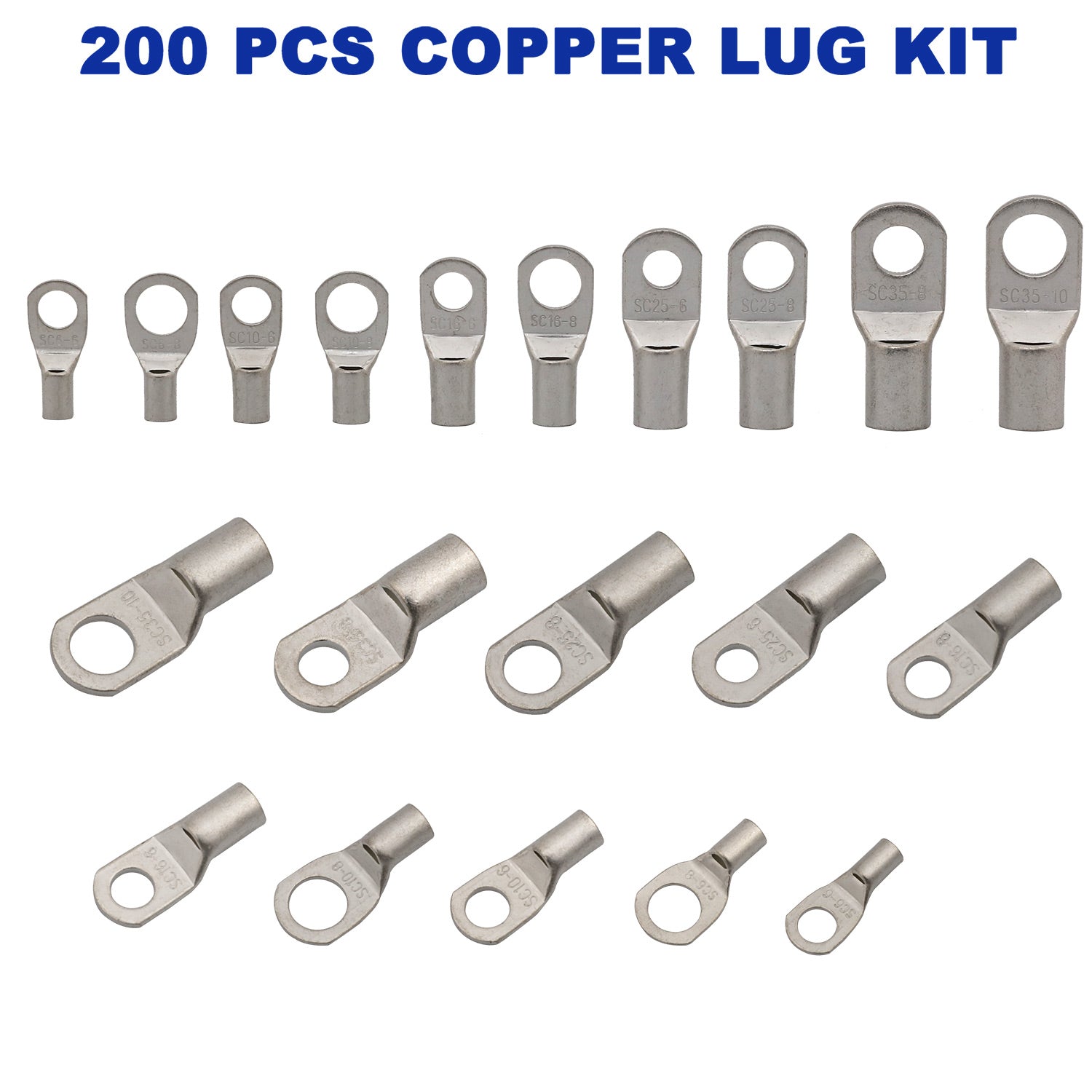 200 Pcs Copper Cable Lug Kit Battery terminal Lug Crimper SC6-6 ~SC35-10