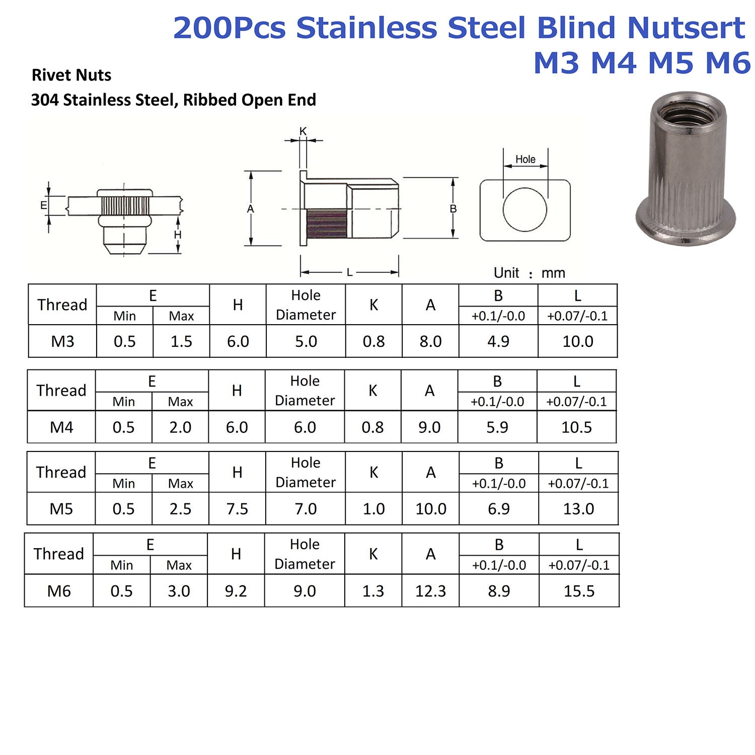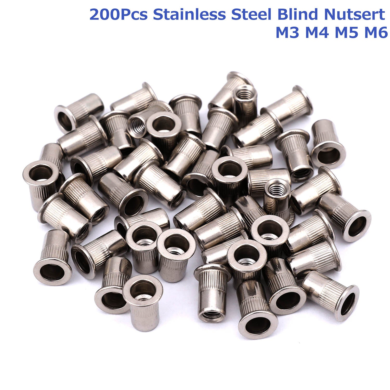 200Pcs Nutserts Rivet Nuts Flange Blind Rivnuts Stainless Steel M3 M4 M5 M6