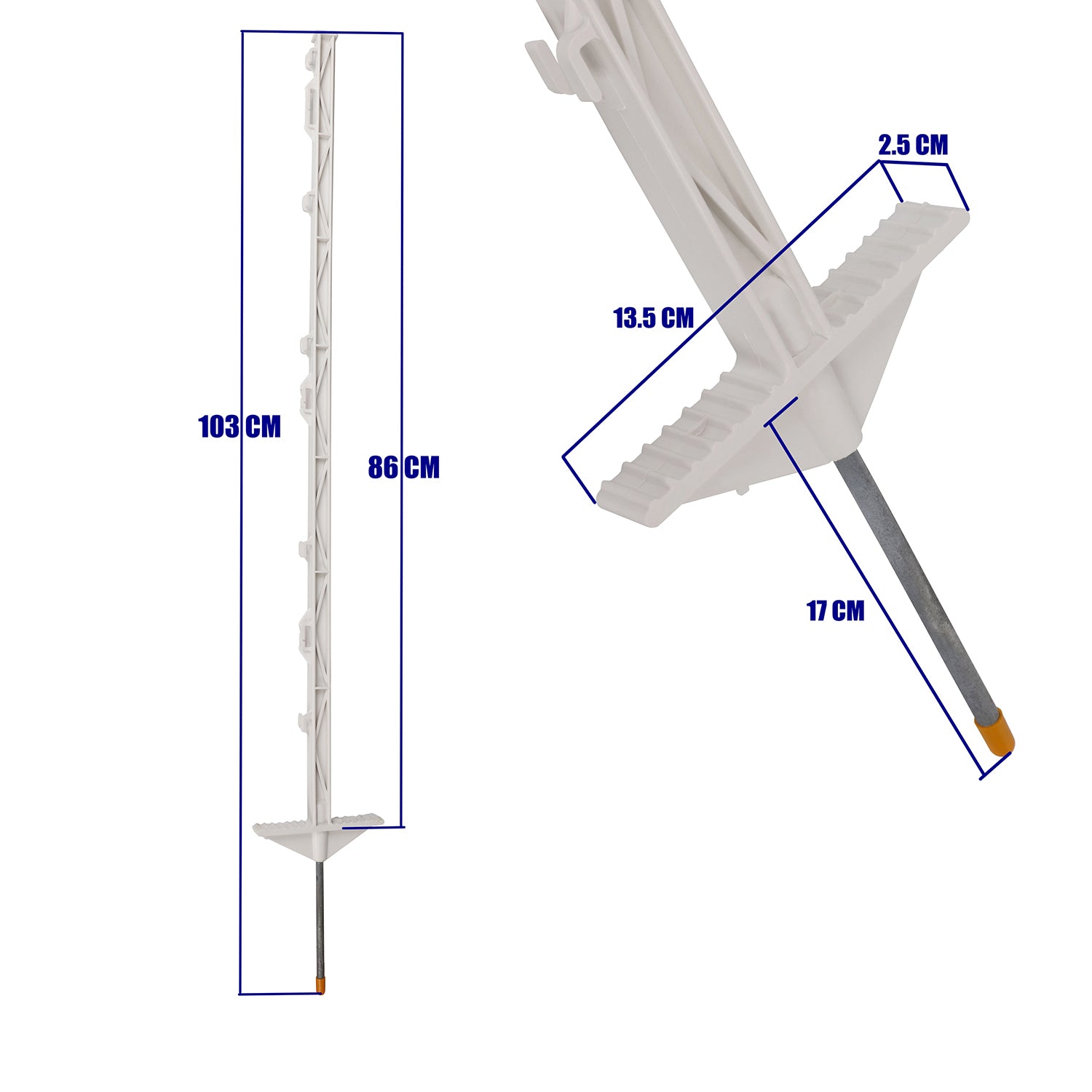 Constructed with UV-stabilized material and a galvanized tread-in spike, these poly posts offer enhanced durability and resistance to outdoor conditions. The 2.5 cm wide foot tread-in surface on both sides ensures easy penetration into the ground, making installation effortless.