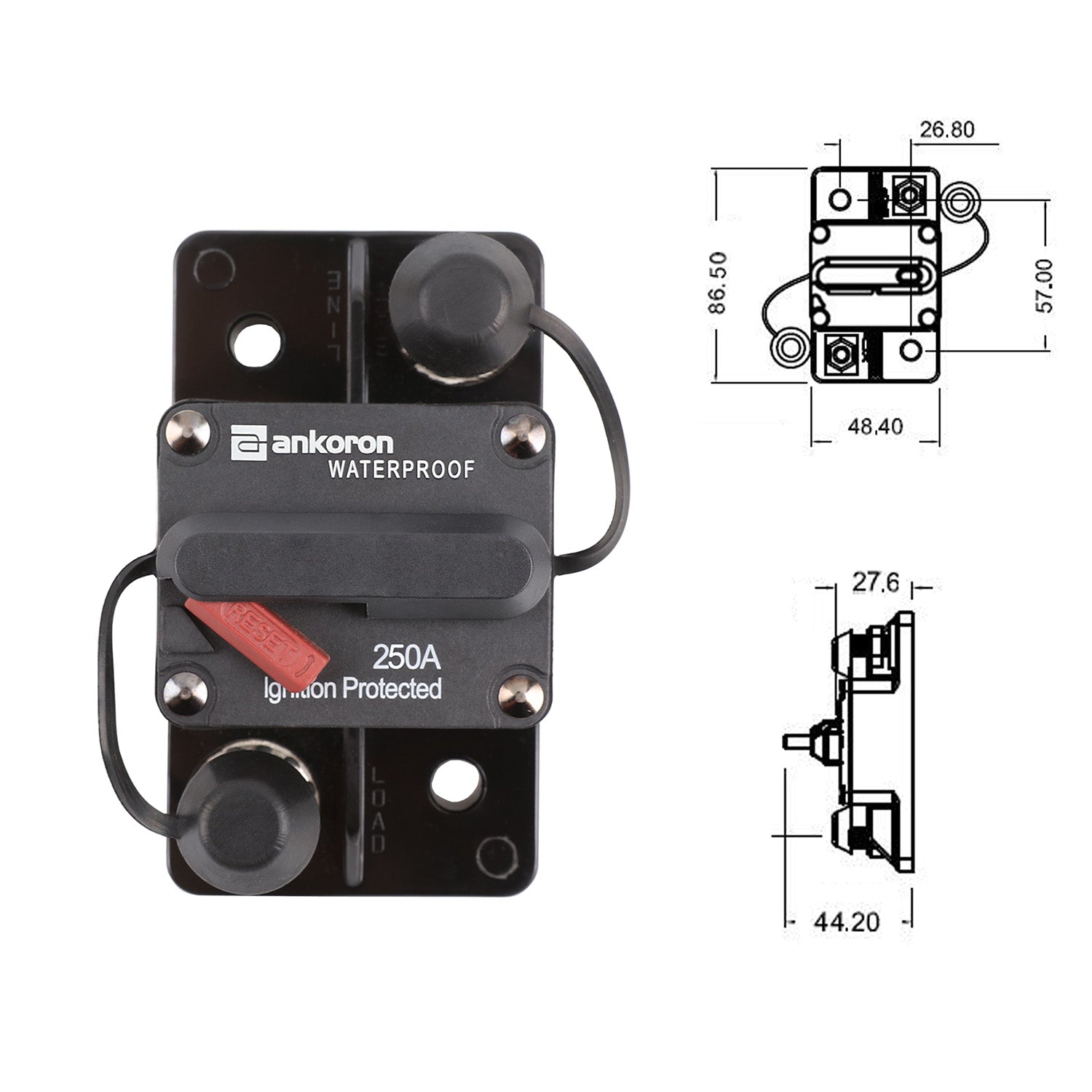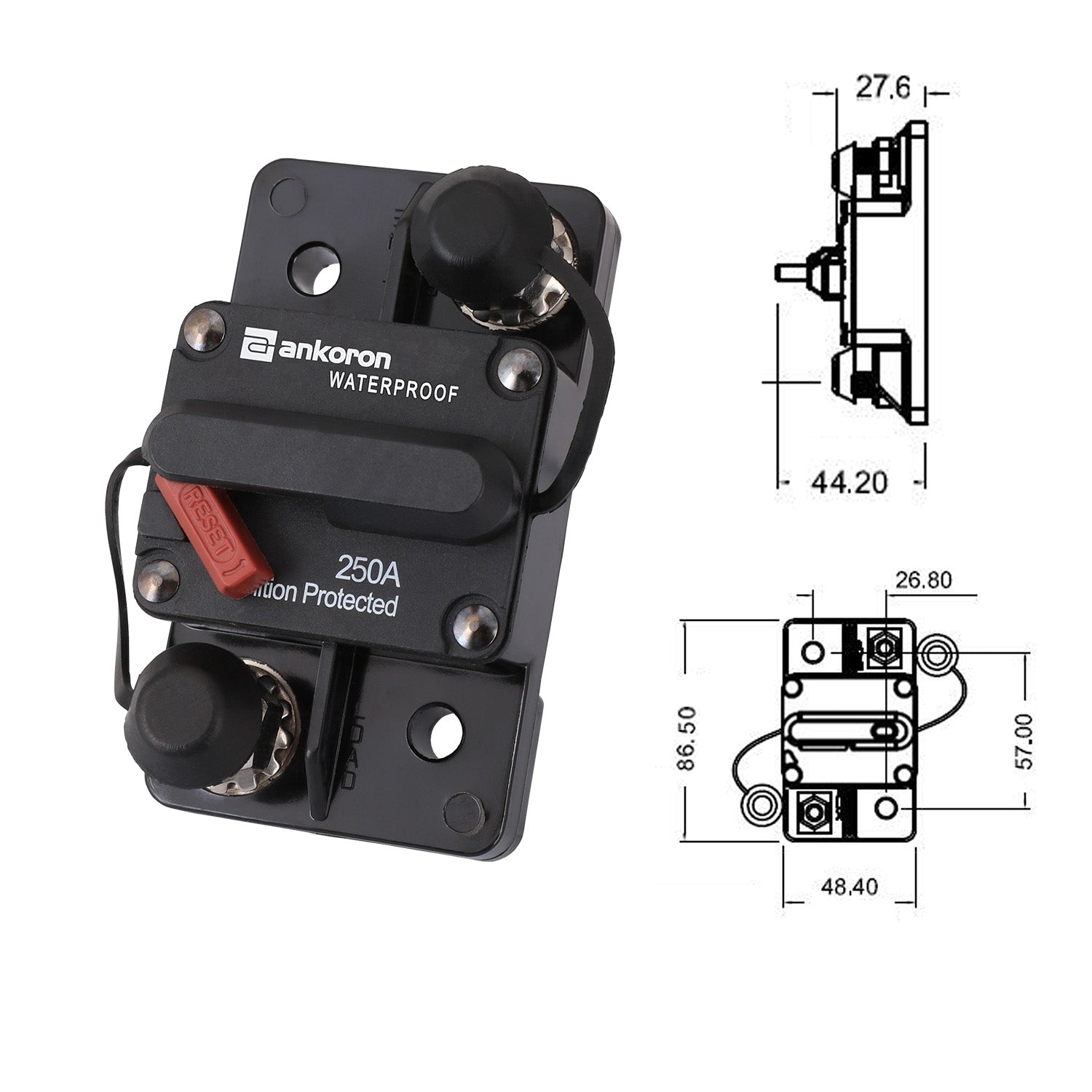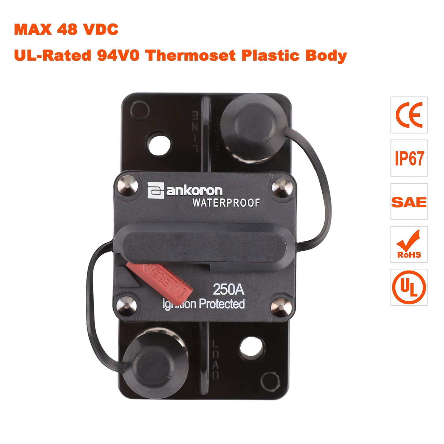 250A AMP Circuit Breaker Wild Surface IP67 Waterproof 12V 48V Manual Reset