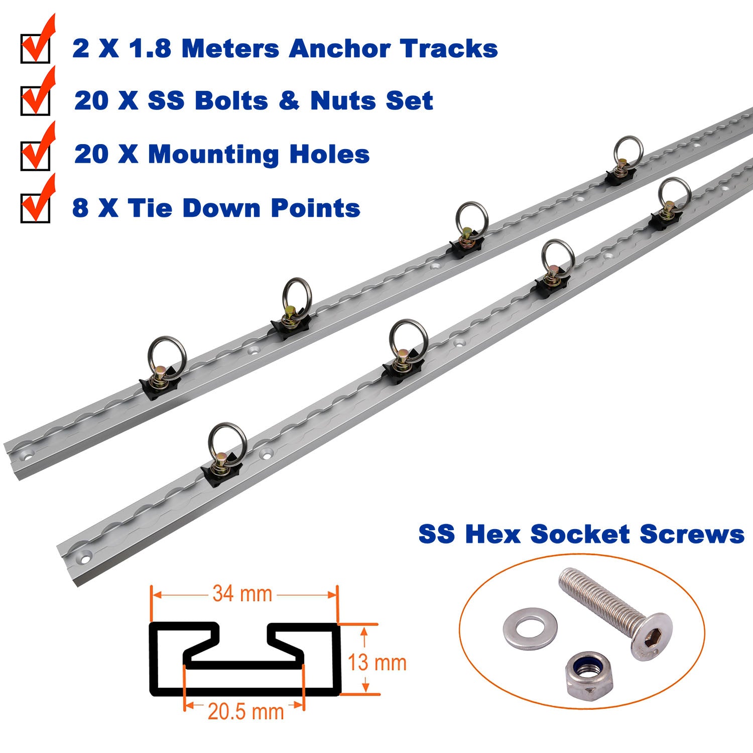 Constructed from high-strength aluminum alloy, this anchor track offers an impressive breaking strength of up to 959 KG (680KG without fracture or extract, as tested by SGS). It includes 304 stainless steel countersunk bolts, washers, and nylock nuts to tightly secure the track in place and ensure optimal stability.