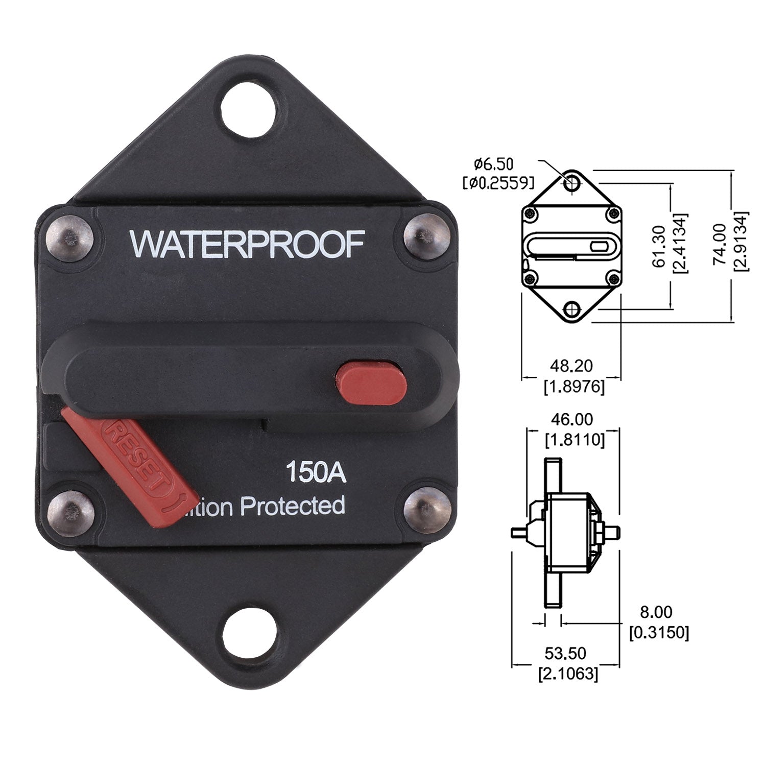 2x150A AMP Marine Circuit Breaker IP67 Waterproof 12V24V Panel Mount Reset