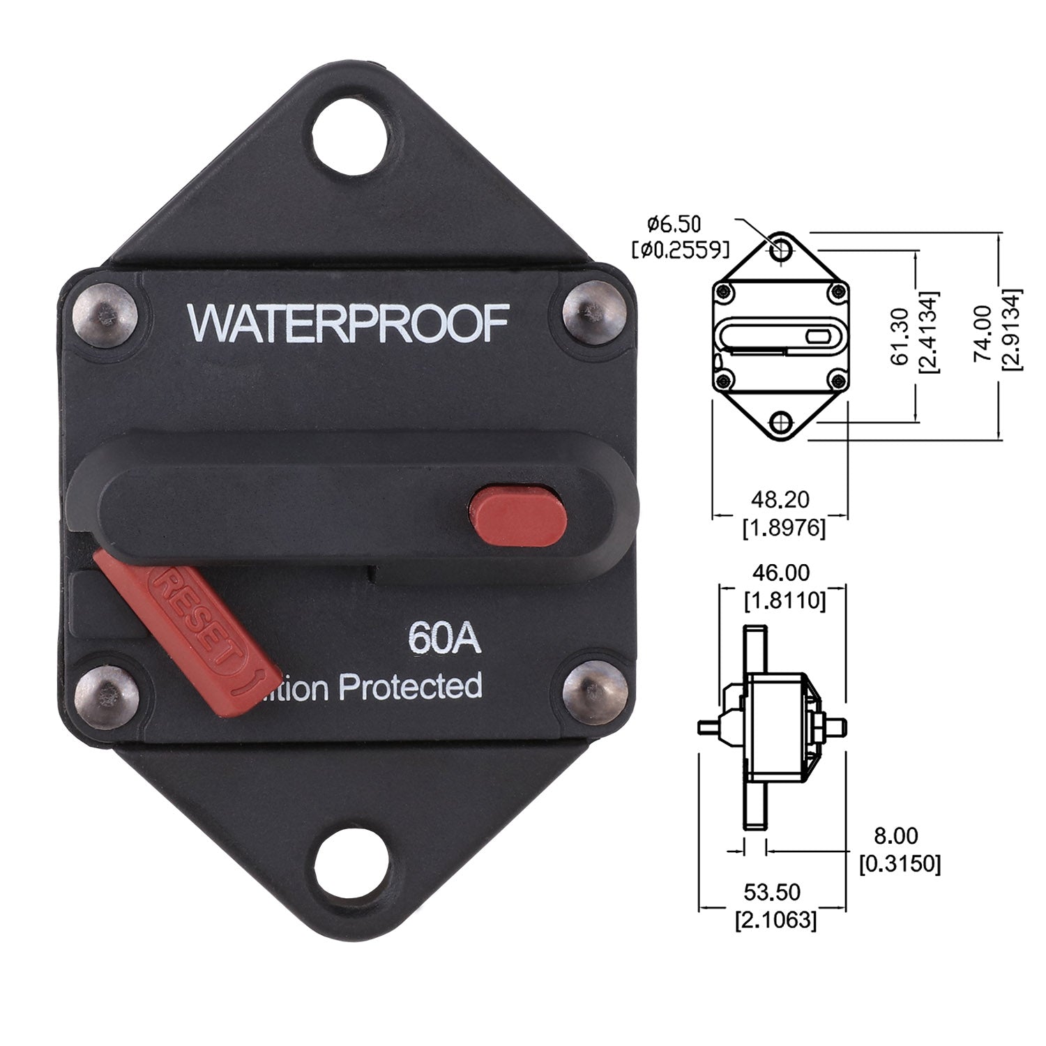 2x60A AMP Marine Circuit Breaker IP67 Waterproof 12V 24V Panel Mount Reset