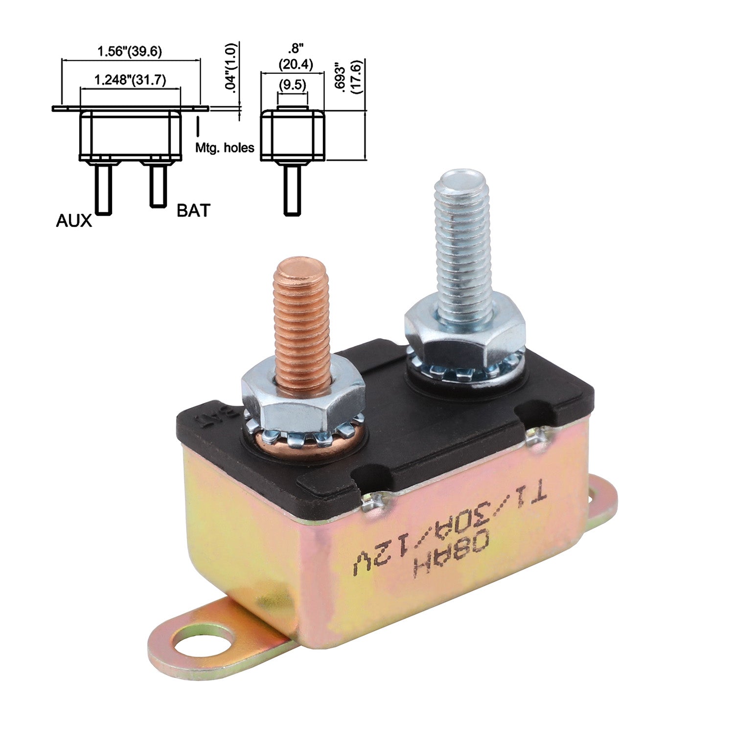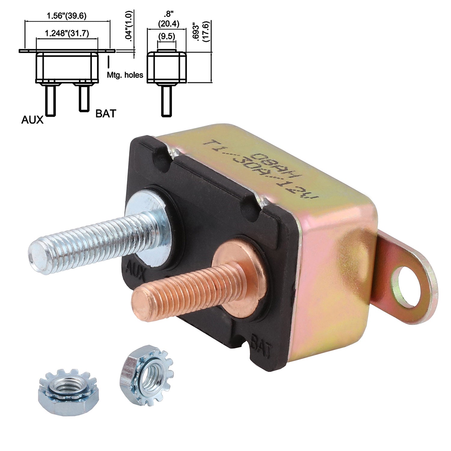 30A AMP 12V Circuit Breaker Dual Battery Fuse Automatic Auto Reset Metal