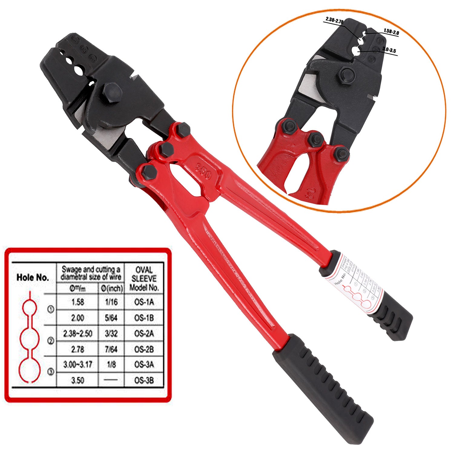 Product Name: 350mm Hand Swager Crimper Stock No.: T0256 Quality Taiwan Made Hand swage and cutting plier...