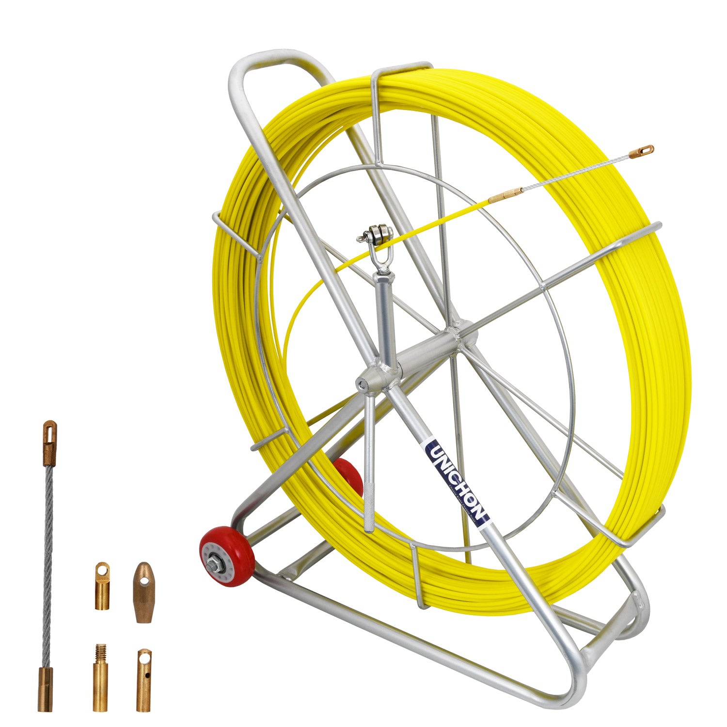 The 4.5mm x 120M Cable Rodder is a professional-grade tool designed for efficient cable pulling, conduit fishing, and duct routing. Constructed with a fiberglass inner core, it offers an optimal balance of rigidity and flexibility, while the polyethylene outer jacket provides durability and smooth operation. The unit is mounted on a sturdy wheeled steel frame for easy handling and transportation, making it ideal for telecom, electrical, and utility installations. It is also widely used for cleaning optical cables and communication pipes.
