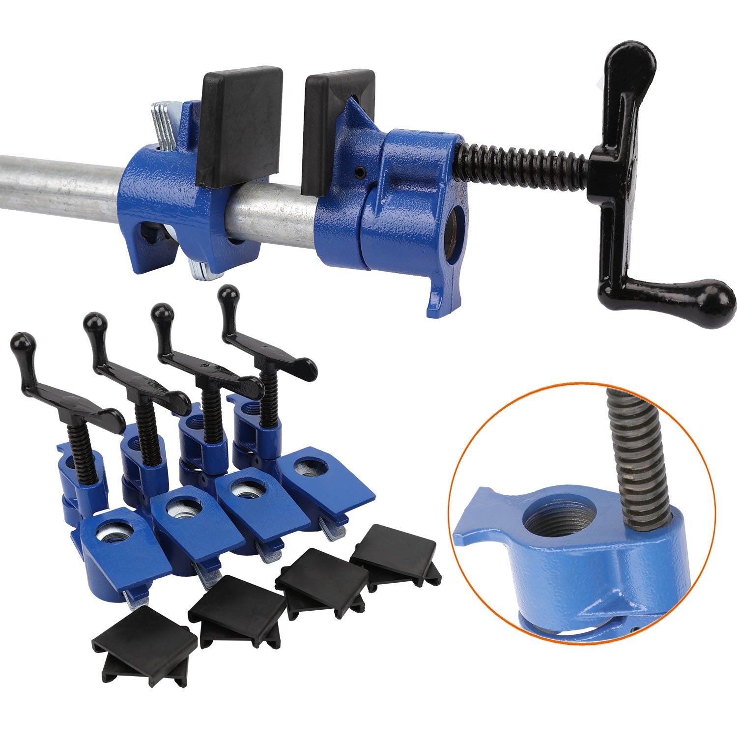 The 4 Sets 3/4 Inch Pipe Clamp (T0904) is a professional-grade woodworking tool designed for secure and precise clamping. Made from drop-forged steel and heavy-duty heat-treated cast iron, these clamps provide superior strength and durability for woodworking, cabinetry, and furniture-making projects.