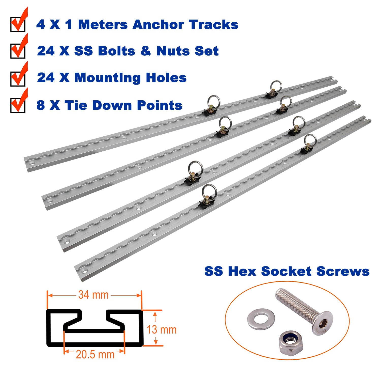 The 4 x 1000MM Anchor Track Tie Down Points Rail offers a versatile and adjustable anchoring system, designed to secure cargo in utes, vans, 4WDs, trailers, and other vehicles when tie-down points are needed. Constructed with a robust aluminium alloy structure, this anchor track boasts a breaking strength of up to 959 KG (680 KG without fracture or extract, as per SGS testing results), providing a reliable solution for securing heavy loads.
