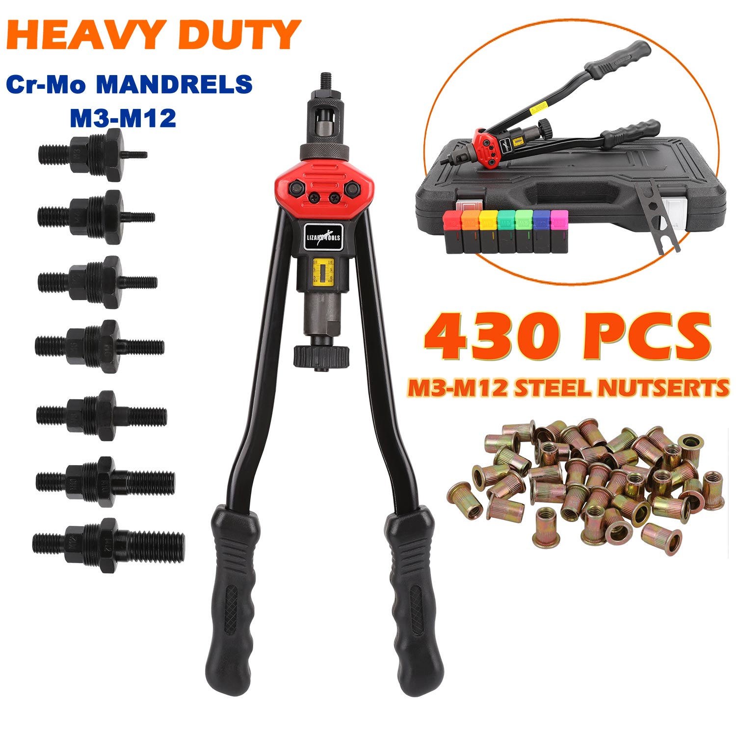 430Pcs  Rivnut Rivet Nut  Riveter Nutsert Gun Tool Kit