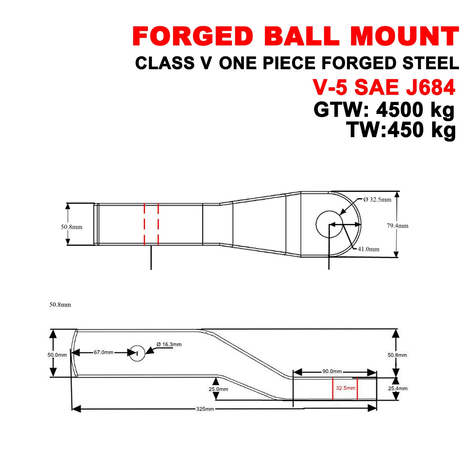 Product Name: 2" Drop Forged Ball Mount With 70mm Tow Ball Stock No.: T1145 Made from one...