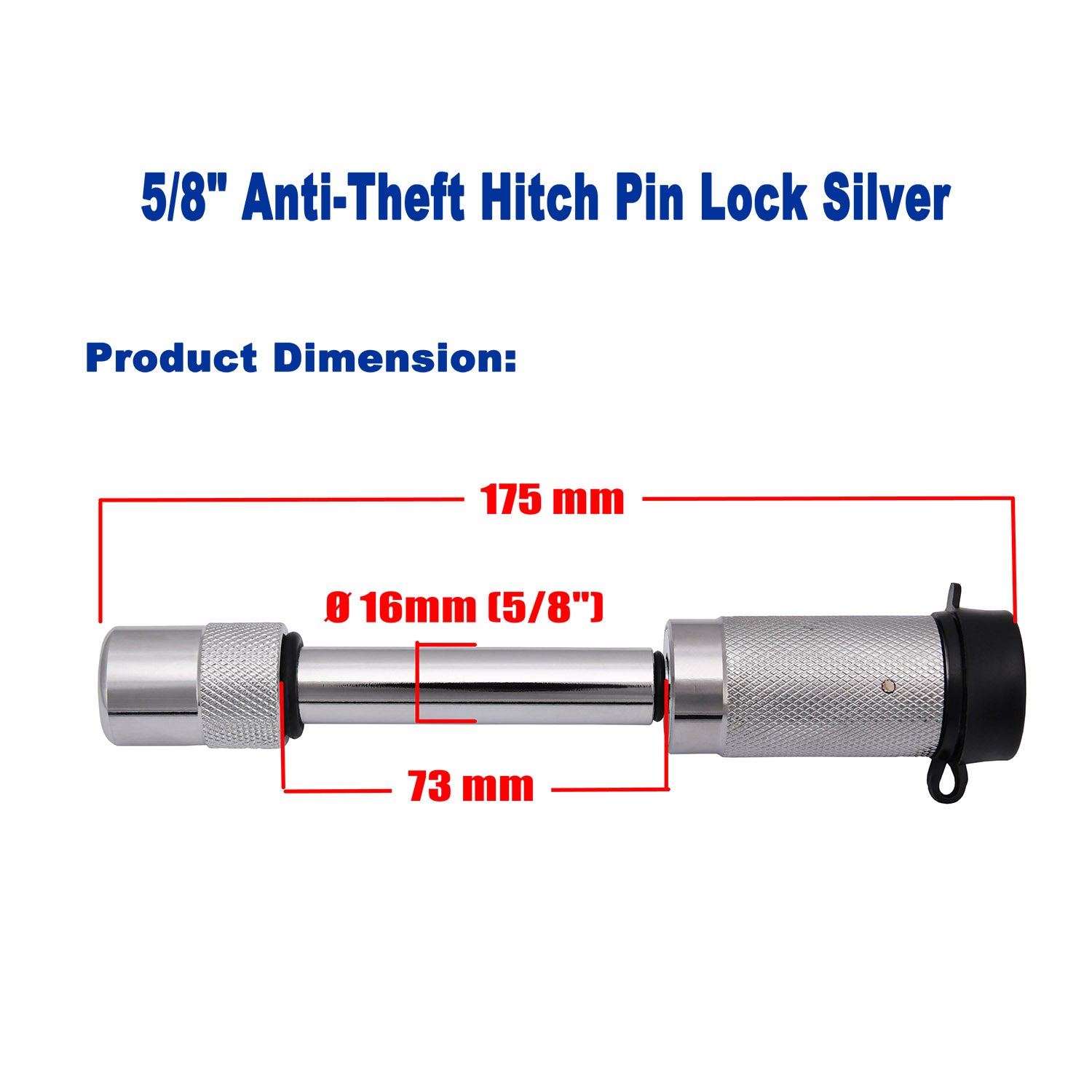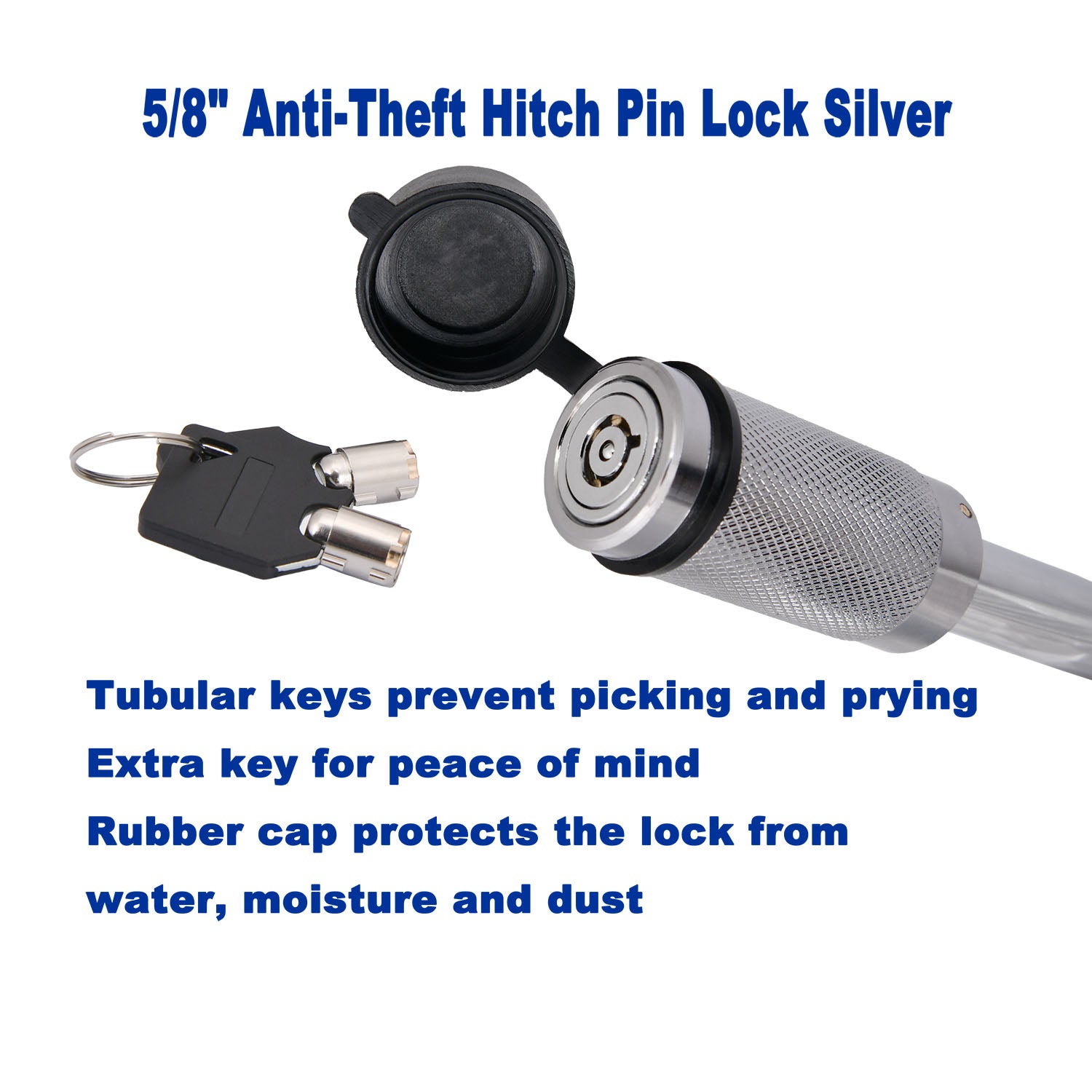 5/8" Hitch Pin Lock S Type Anti-Theft Tow Bar Tongue Lock Silver Tow Bar Tongue