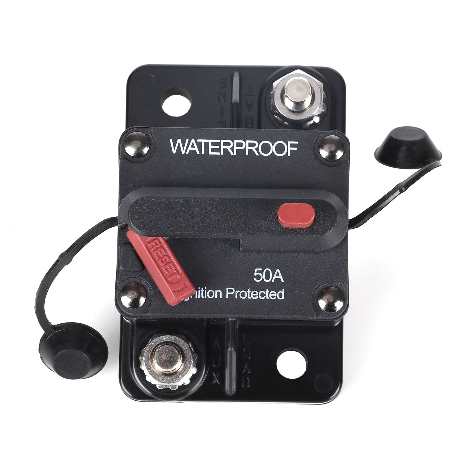 50A AMP Circuit Breaker Dual Battery IP67 Waterproof 12V 24V Fuse Manual Reset
