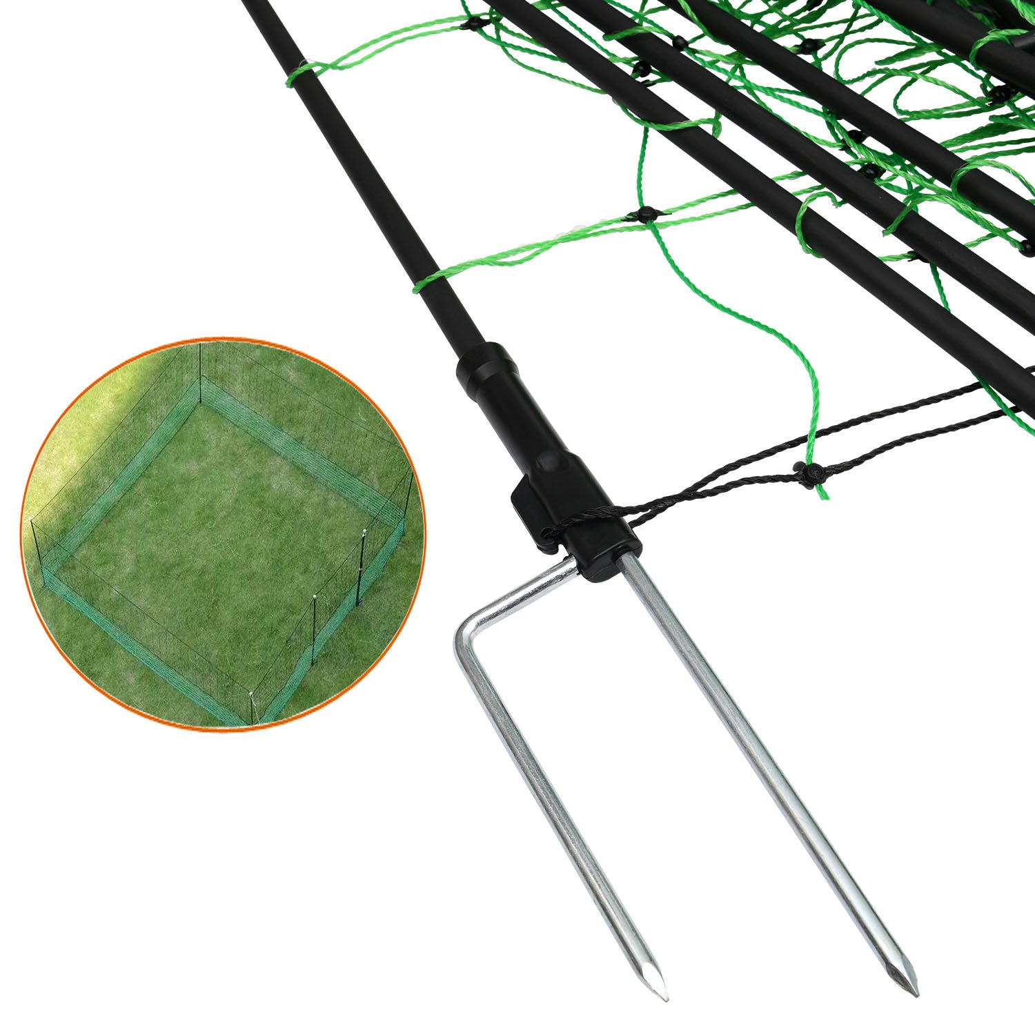 ✔ Stable & Secure Posts – Tough PVC + fiberglass posts with double-pronged metal foot spikes for enhanced ground stability.