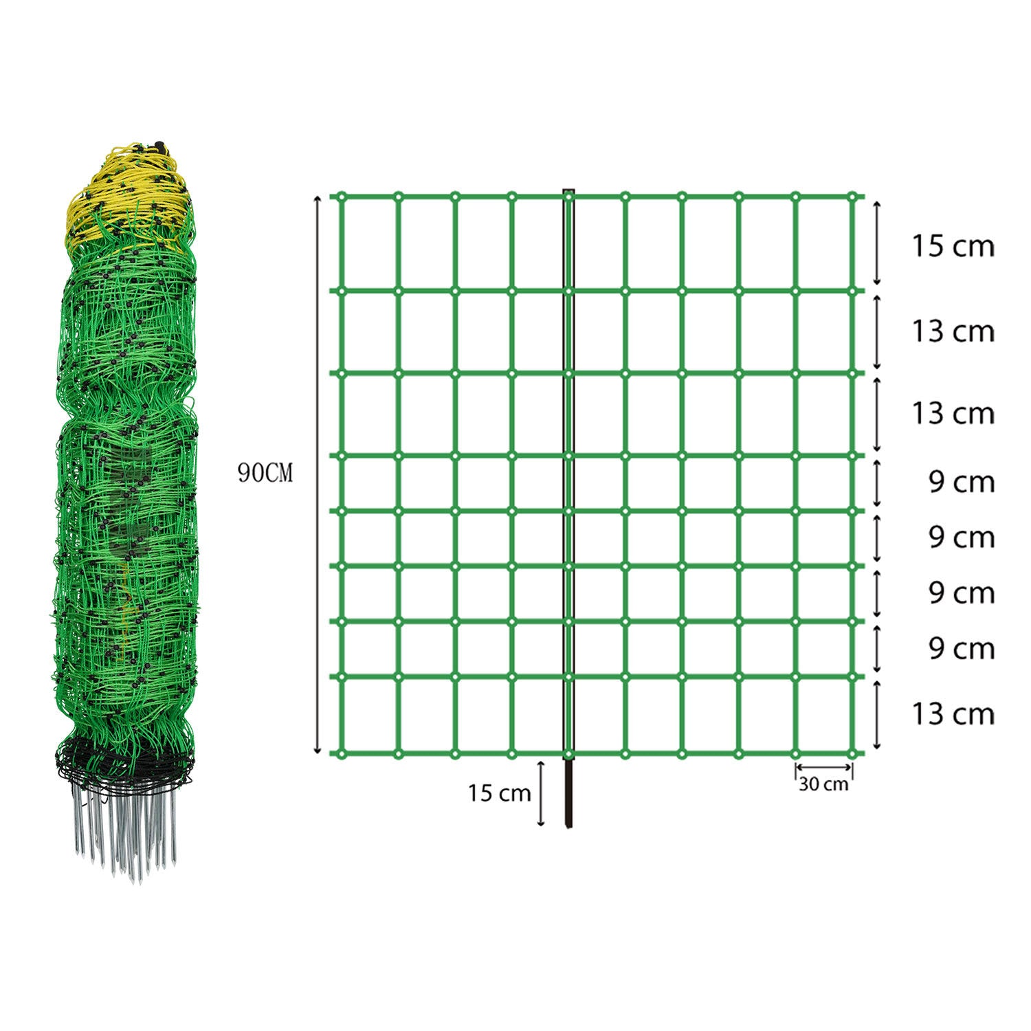 The 50M x 90cm Electric Netting Fence is an innovative and reliable solution for protecting your flock and optimizing pasture management. Designed to deter feral dogs and predators, this electrified net fence ensures the safety of your animals while offering easy setup and portability.