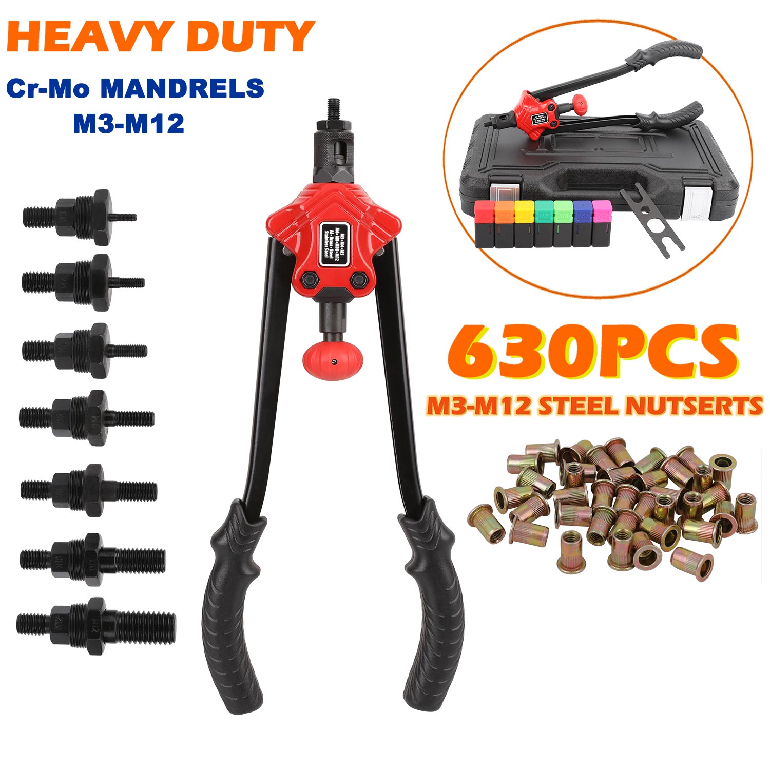 630Pcs Rivnut Rivet Nut  Riveter Nutsert Gun Tool Kit