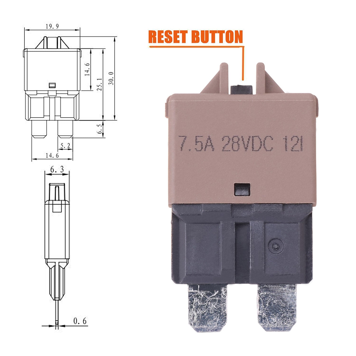 Product Name: 1 x 7.5 AMP STD Blade ATC Type Manual Reset Circuit Breaker Stock No.: T0758...