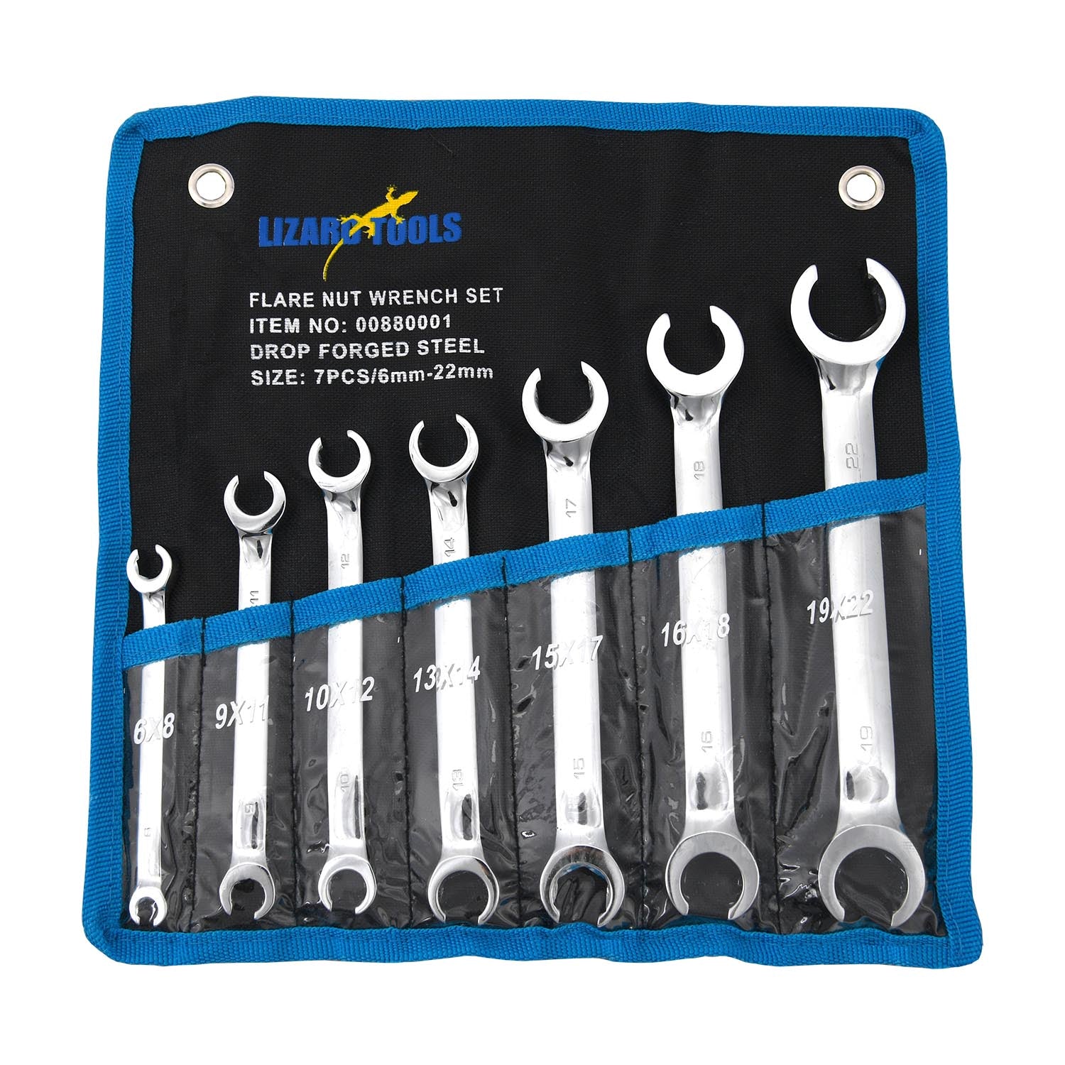 7 Pcs Trade Grade Flare Nut Spanners Set Brake Hydraulic Line Wrench 6mm - 22mm