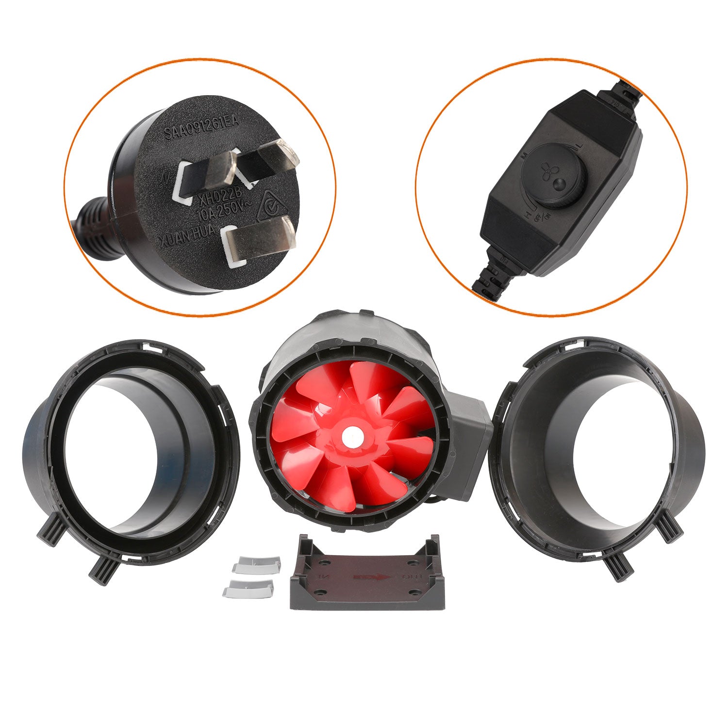 EzyFlow 4 Inch 100mm Inline Duct Fan Speed Controller Carbon Filter Exhaust Fan