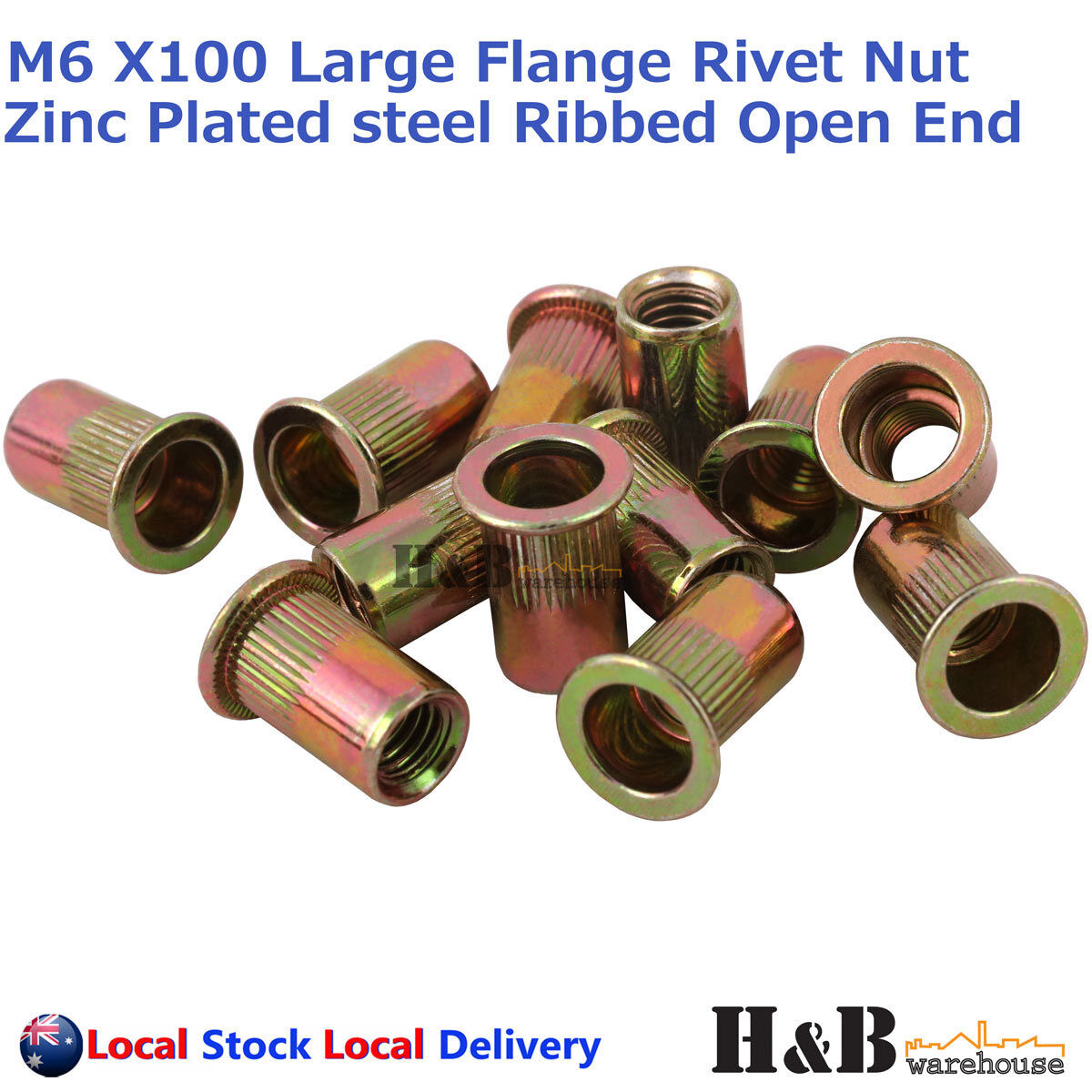 Product Name: M6 X 100 Pcs Nutserts Large Flange Ribbed Open End Stock No.: T0342 High Quality...