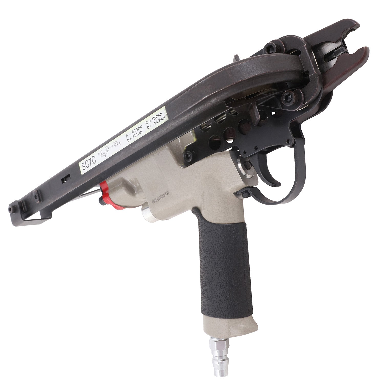 The Pneumatic Air C24 Hog Ring C Clip Gun is an industrial-grade tool designed for efficiency and ease of use. Ideal for fence netting, bird cages, and various farm applications, this air-operated gun ensures a secure and reliable fastening process.