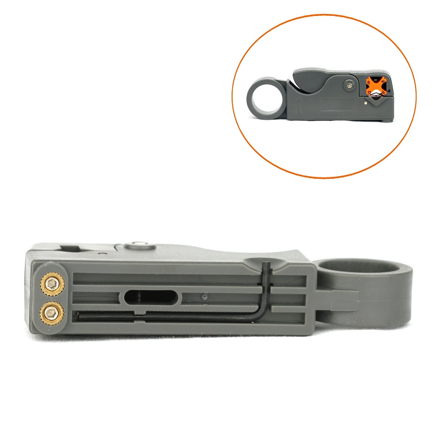Product Name: Rotary Coaxial Cable Cutter / Stripper Stock No.: T0018 Fully adjustable and replaceable blades. Remove...